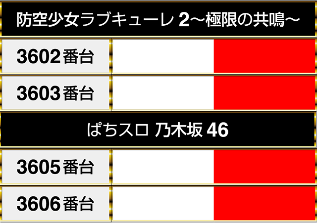 2機種を通してプラスptが並ぶ場所は、『防空少女ラブキューレ2〜極限の共鳴〜』や『ぱちスロ 乃木坂46』にもあった。