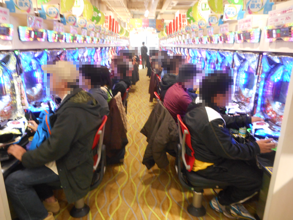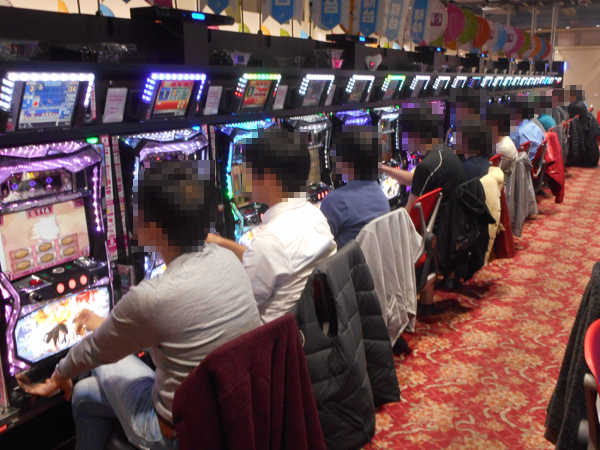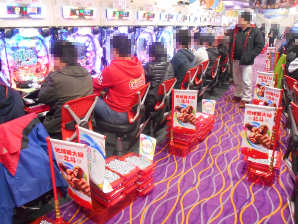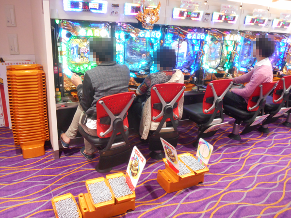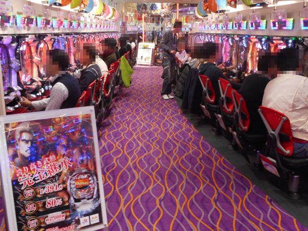 パチンココーナーでは朝と同様に「ぱちんこCR北斗の拳6 拳王」に空き台はほとんど見当たらない。バトルの勝利し、満足そうなプレイヤーも見ることができた。「CR牙狼 金色になれ」、「CRまわるんパチンコ大海物語3」、「CRルパン三世~消されたルパン~」といった定番とも呼べる機種も高い支持を受けている。