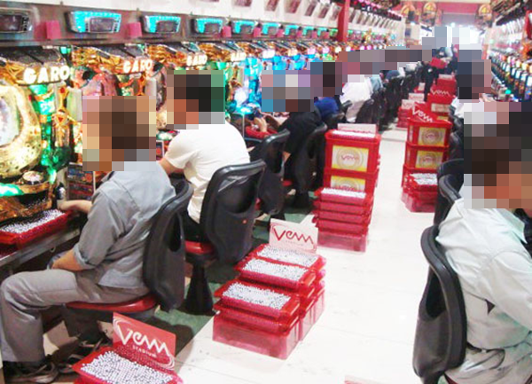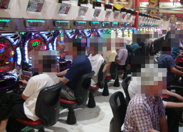 4円パチンコでは、「CR牙狼 魔戒ノ花」の盛り上がりがひときわ大きく、満足そうな笑みを浮かべているプレイヤーも多い。