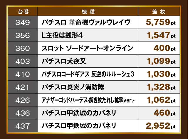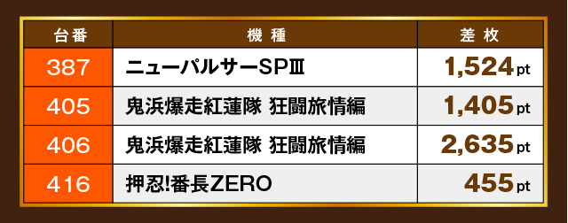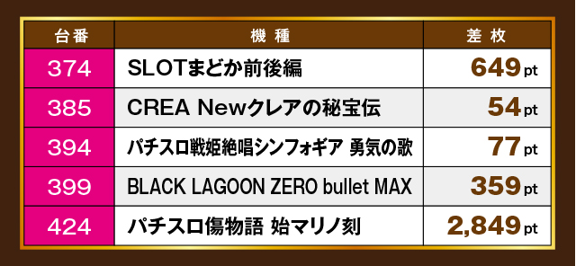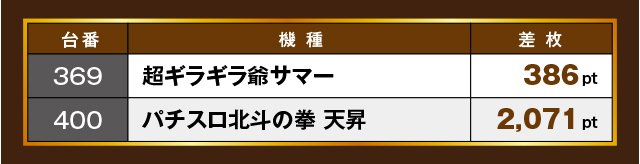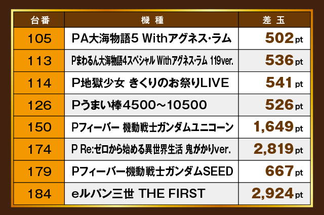 今回の「ウエスタン佐倉店」の結果は全国制圧。前回に引き続き、2連続で全国制圧を達成する高いポテンシャルをまざまざと披露してくれた。突出した特大レコードが生まれたわけではなかったものの、安定して満遍なく様々な機種からプラス記録が生まれていたのが連続Vの要因だったのだろう。