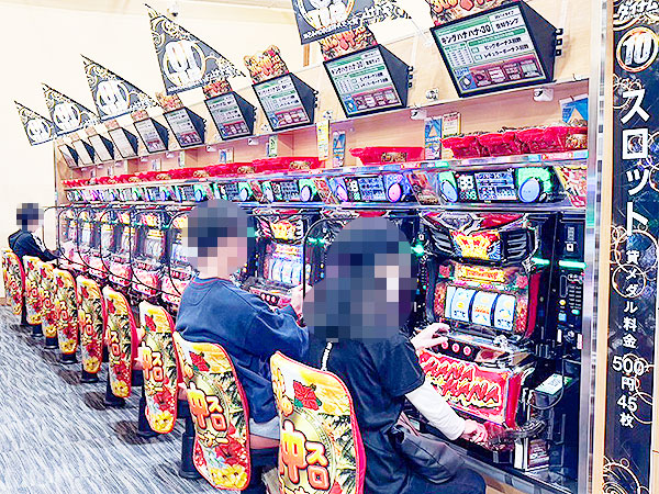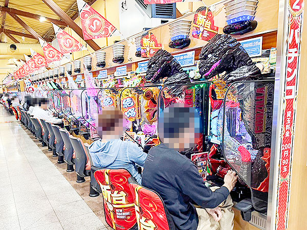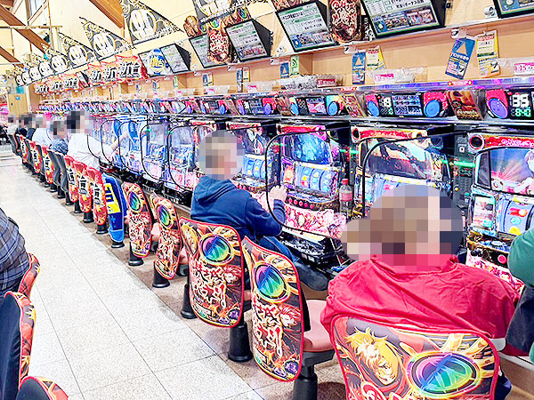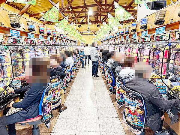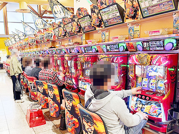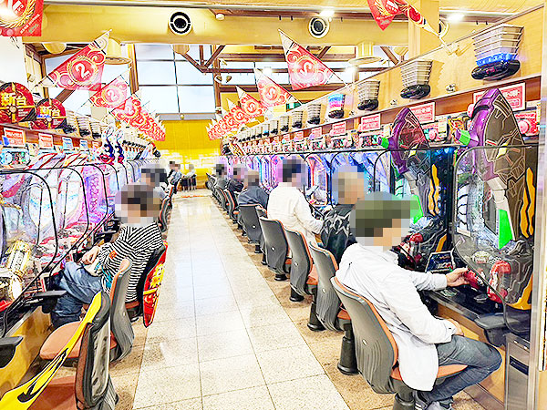 取材時は既に多くのプレイヤーが集結し、パチンコ・パチスロを問わずにぎやかな状況となっていた。