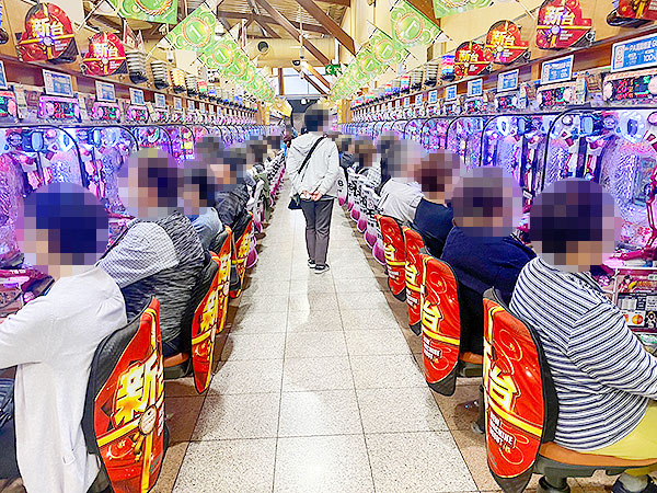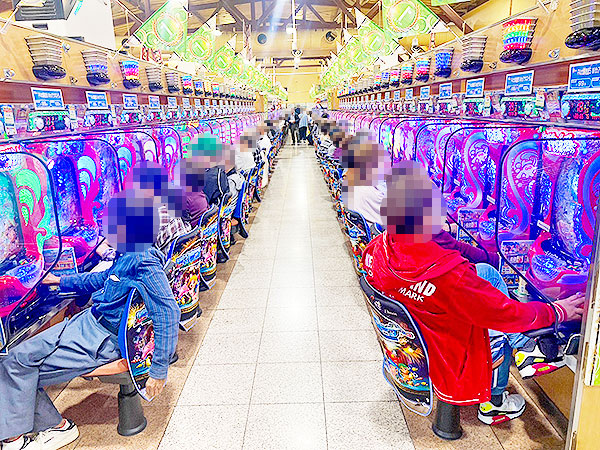 100円/90玉パチンコを見てみると、海物語シリーズを中心に理想的な展開を迎えたプレイヤーを目撃。シマ全体が明るい雰囲気に包まれていた。