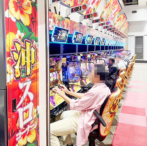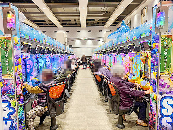 1.087円パチンコは海物語シリーズを中心に高稼働。多くのプレイヤーで活気づいており、シマ全体が明るい雰囲気に包まれていた。