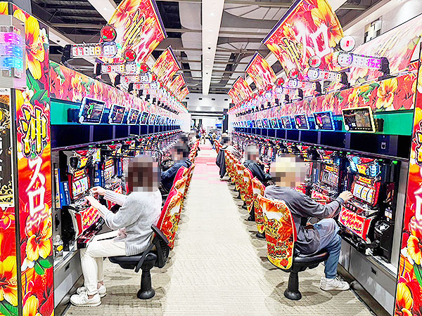 店内では貸し玉料金を問わず様々な機種で、心ゆくまで楽しむプレイヤーの姿が見られた。