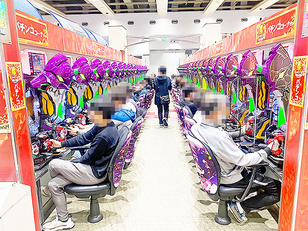 16時ごろの4円パチンコを見てみると「新世紀エヴァンゲリオン〜未来への咆哮〜」や「e義風堂々!!〜兼続と慶次〜3」、「スマートぱちんこ ソードアート・オンライン」が活況で、プレイヤーたちの嬉しそうな表情が印象に残っている。