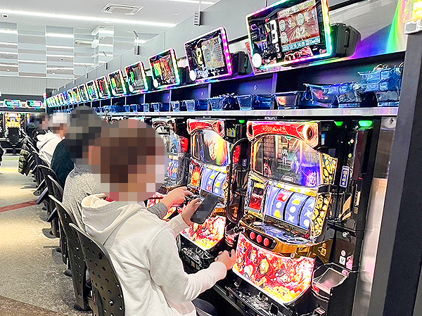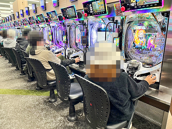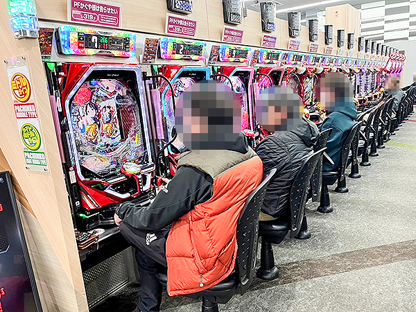 「Pフィーバーかぐや様は告らせたい」や「P大海物語5」の盛り上がりも大きい。各シマに華やかな光景が広がっていた。
