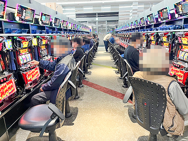 1000円/46枚パチスロに目を向けると、「スーパーハナハナ2-30」や「キングハナハナ-30」などのハナハナシリーズが微笑ましいムードに包まれており、遊技中に見せるプレイヤーの満足気な表情が印象に残っている。