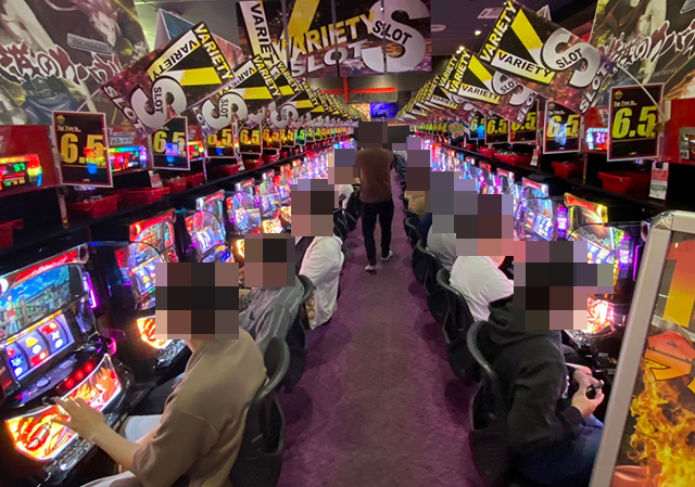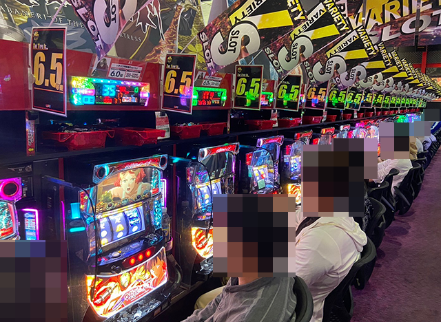 開店直後のパチスロコーナーでは、スマスロと6.5号機がとくに人気。
