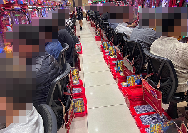 パチンココーナーも増台された機種をはじめ、あちこちに遊技をはじめる姿があった。