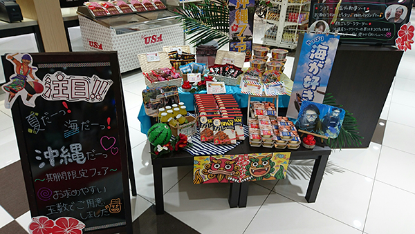 期間限定でおこなわれている沖縄フェアなど、賞品コーナーにも楽しめそうな要素が満載。遊技はもちろん、それ以外の面からも笑顔になってもらいたいといったホールの思いが伝わってきた。