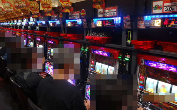 ジャグラーシリーズも好評となっており、空き台が見当たらないほどに大きくにぎわっていた。
