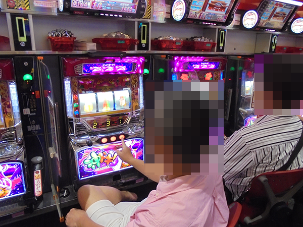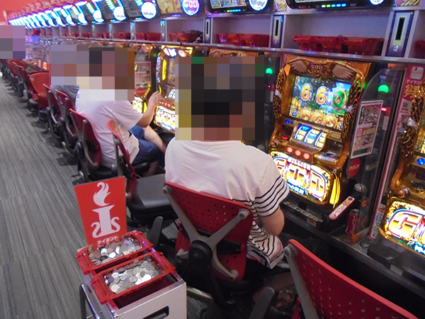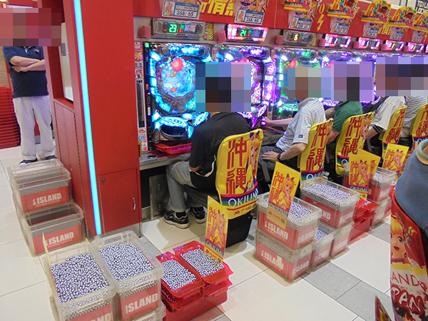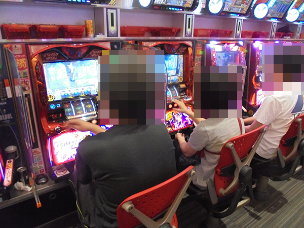 14時頃の20円パチスロでは、「沖ドキ!-30」や「バジリスク~甲賀忍法帖~絆」に機種の性能を最大限まで引き出しているといったプレイヤーが多数。キラキラと輝くような笑顔からは、心から遊技を楽しんでいることも伝わってきた。