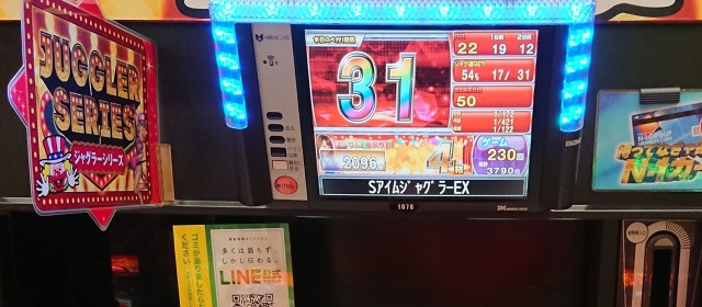 さらに『アイムジャグラーEX』6台では+6千4百枚超とボーナスタイプとは思えない実力を発揮した台を筆頭に、+3千枚超×1、合わせて+1万5千枚を突破した。
