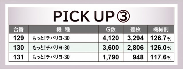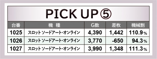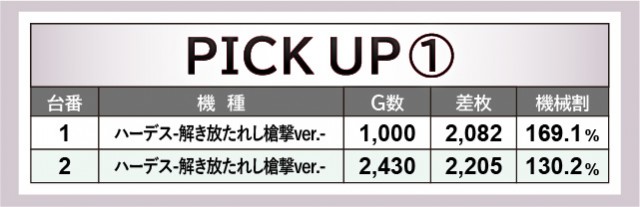 何よりもまず『パチスロ 革命機ヴァルヴレイヴ』142番台+10,310枚という記録に目を奪われてしまう。そして『L戦国乙女4 戦乱に閃く炯眼の軍師』は万回転OVERを達成しており、両機種が先陣を切って盛り上がりをリードしていたと言えよう。また回転数と差枚数が比例する展開が顕著でもあり、遊技していたファンは大きな手応えを感じては、力強くレバーを叩いていたのではないだろうか。