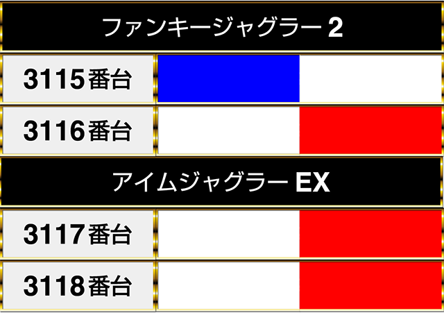 2機種を通してプラスptが並ぶ場所は、『沖ドキ!GOLD』や『アイムジャグラーEX』などにもあった。