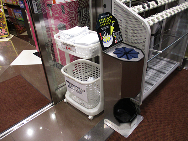 タオルや傘を無料で貸し出しており、急に天候が悪くなっても安心。取材時にも夕立がふっており、サービスを利用するたくさんのプレイヤーをみかけた。