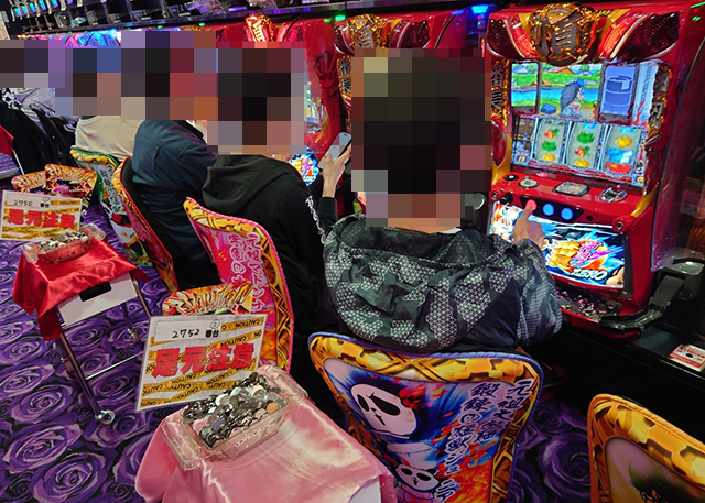 『パチスロ炎炎ノ消防隊』や『SLOTバジリスク~甲賀忍法帖~絆2』もにぎわっており、目をひかれる場面が多い。