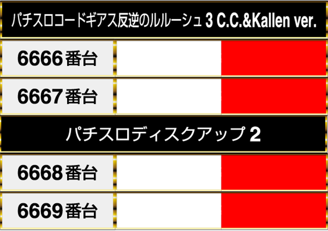 『パチスロコードギアス反逆のルルーシュ3 C.C.&Kallen ver.』の2台は『パチスロディスクアップ2』の2台と並んでプラスpt!