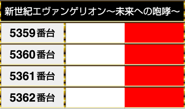 最新機種では、『新世紀エヴァンゲリオン〜未来への咆哮〜』の5359番台から5362番台までがプラスptを記録した。