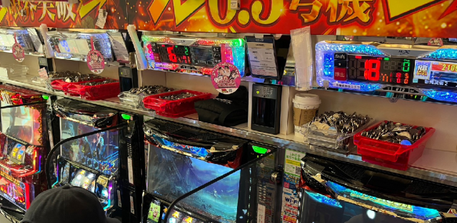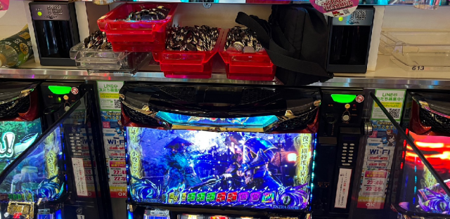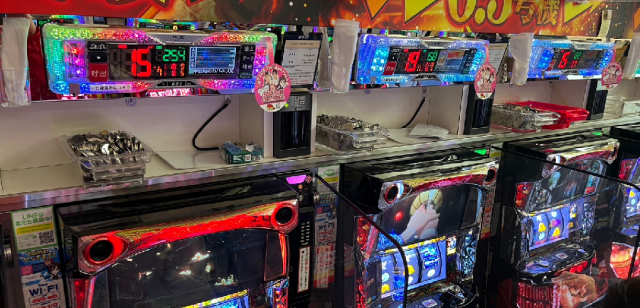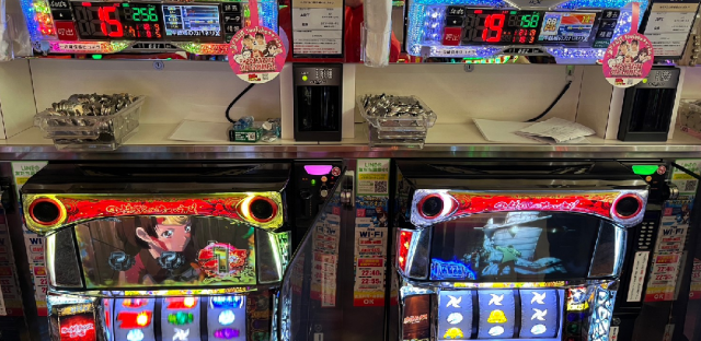 また、この日は横並びで好調となるスポットが5機種も見られた。いずれも稼働は良好で、『スマスロ北斗の拳』では万回転オーバー台も記録した。そのほかにも『アイムジャグラーEX』では2箇所の並びスポットがみられ、マイナス台を含みつつも9台のトータル差枚数は+1万1千枚オーバーをマーク。さらに『パチスロ甲鉄城のカバネリ』『パチスロ新鬼武者2』『パチスロ炎炎ノ消防隊』といった人気機種からも閉店まで打ち込まれた形跡を確認できることから、相当な手応えを感じていたのは間違いないだろう。
