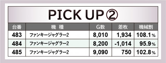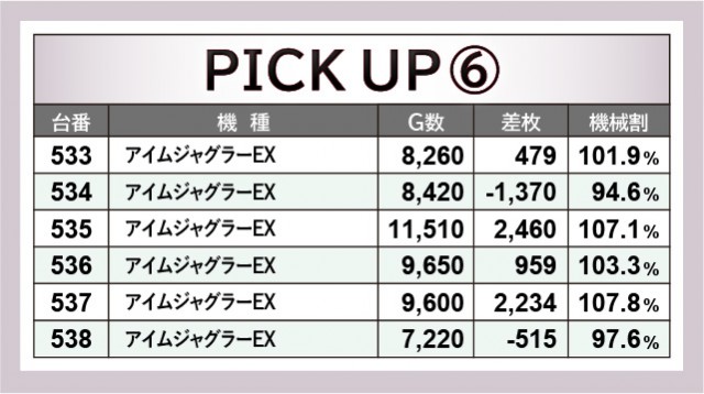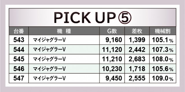 老若男女問わず愛される『ジャグラー』シリーズは、朝から閉店までじっくりと打ち込まれていたのは当然ながら、万回転OVERも複数発生していたのが鮮烈だ。特に『マイジャグラーⅤ』544番台・545番台、『アイムジャグラーEX』535番台は11,000G以上の回転数になっており、相当な好感触を得ていたのは確かである。どの台も右肩上がりのグラフを描き、ファンは有意義な時間を過ごせたことだろう。