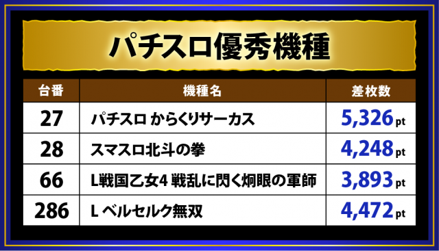 ここからはこの日好出玉となったパチスロ・パチンコそれぞれの上位データに注目していこう。