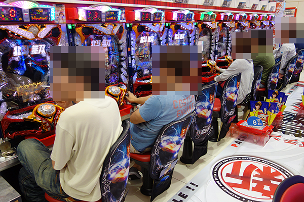 500円/120玉パチンコでは、「CR牙狼 魔戒ノ花」や「ぱちんこCR真・北斗無双」に魅力的な光景が広がっており、プレイヤーの表情もにこやかだ。