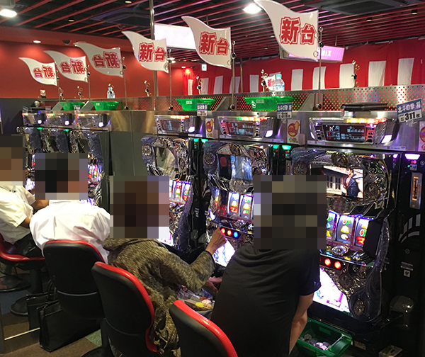 17時過ぎの店内では、4円パチンコの「CR牙狼 魔戒ノ花」や「CRスーパー海物語IN JAPAN」などに、目を引くような活躍をしているプレイヤーが存在。