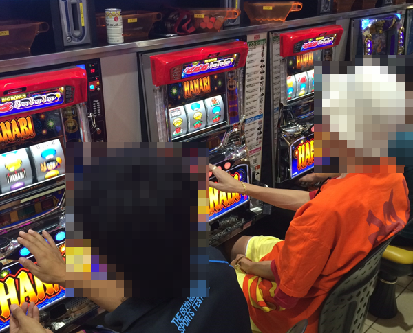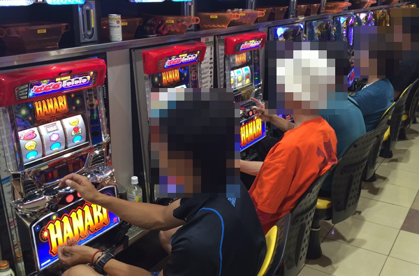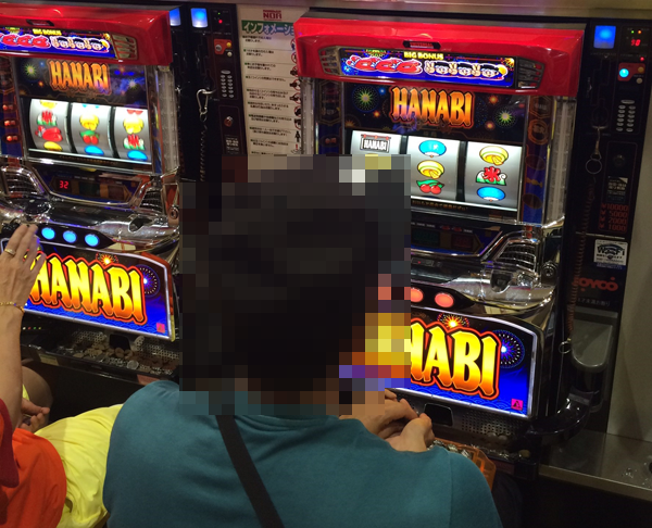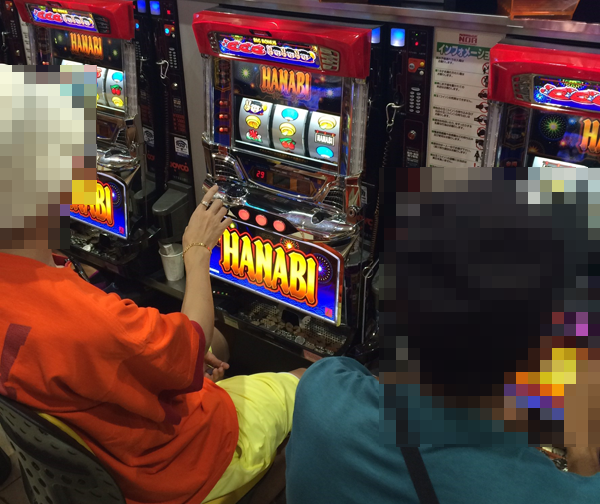 さまざまな機種が盛り上がるなかでも、「ハナビ」において、輝くような表情で遊技を楽しみ、満足そうなプレイヤーを確認。