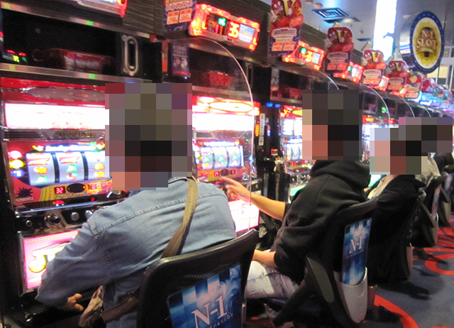 ホール内を進んでいくと、さまざまな機種に遊技を満喫しているようなプレイヤーの姿があった。
