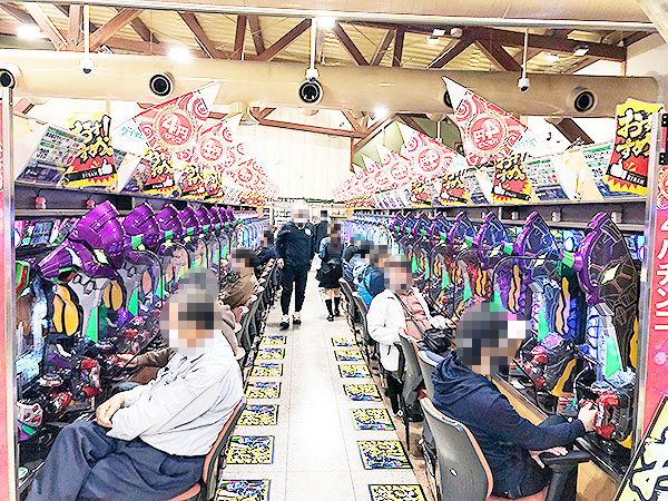 14時半ごろの4円パチンコを見渡すと、「新世紀エヴァンゲリオン〜未来への咆哮〜」や海物語シリーズでプレイヤーたちが華麗なパフォーマンスを披露。それぞれ納得の遊技ができていたことを確認している。