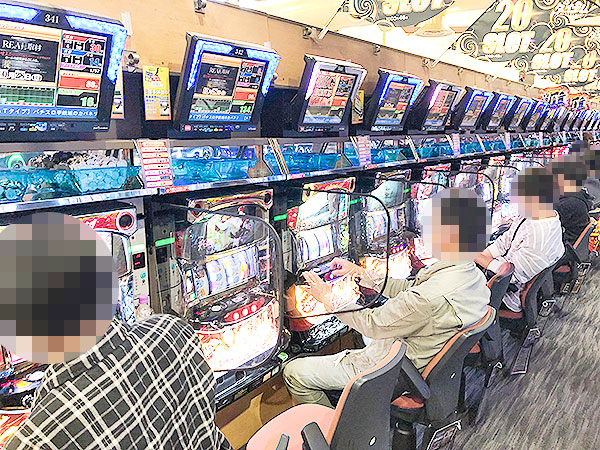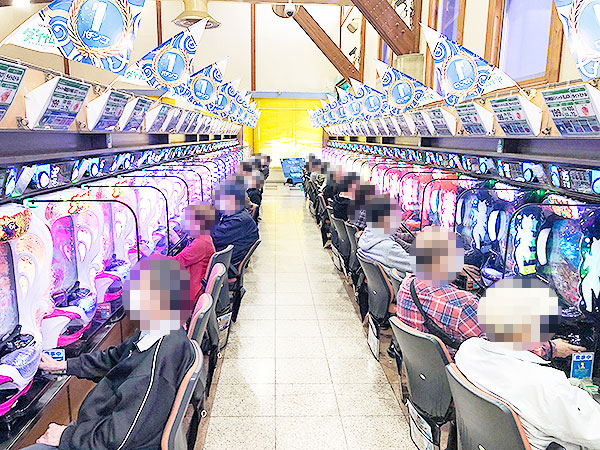 100円/89玉パチンコも海物語シリーズを中心に盛り上がりが大きく、シマ全体にプレイヤーの熱気が感じられた。