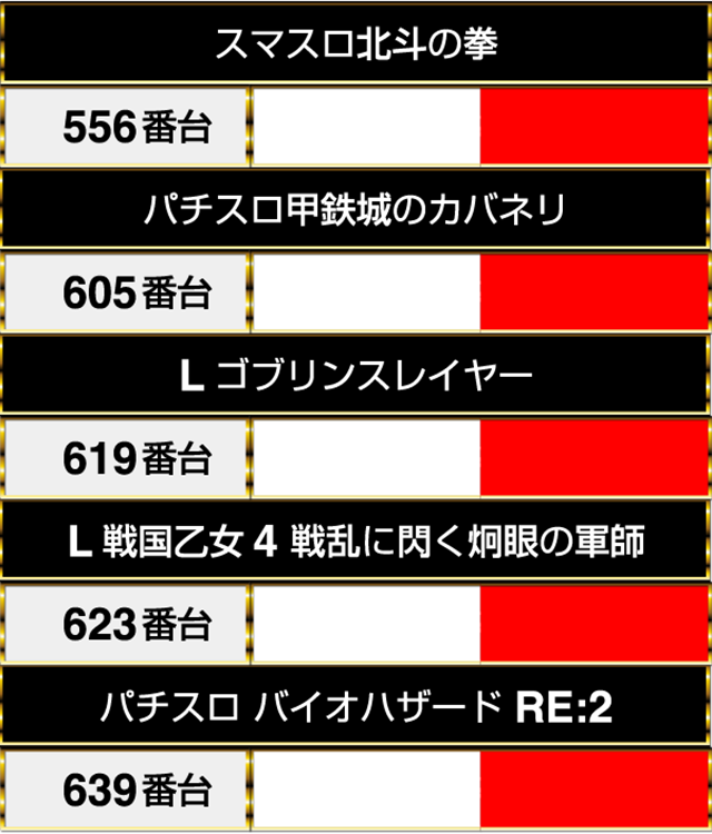 『スマスロ北斗の拳』の556番台や『パチスロ甲鉄城のカバネリ』の605番台もプラスptを記録した。