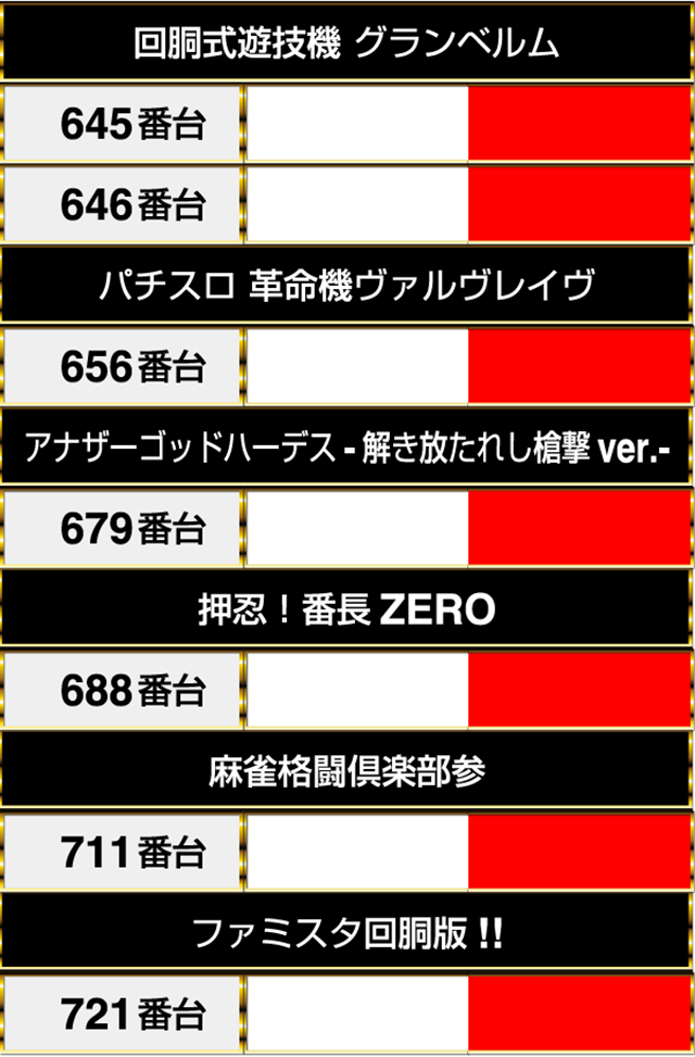 『パチスロ 革命機ヴァルヴレイヴ』の656番台や『アナザーゴッドハーデス-解き放たれし槍撃ver.-』の679番台などもプラスptとなった。