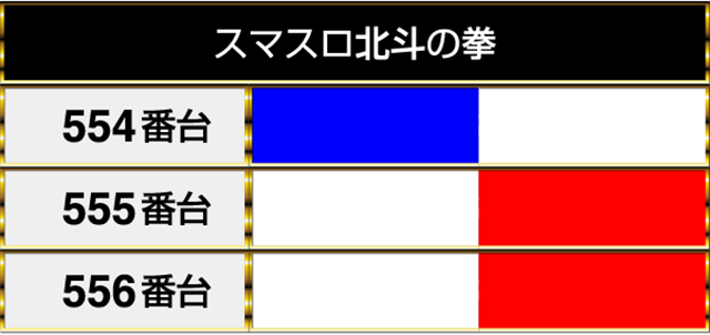 『スマスロ北斗の拳』では、555番台と556番台にプラスptが並んだ。