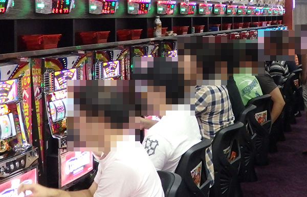 100円/90玉パチンコのムードも明るく、プレイヤーたちはパチンコの醍醐味をじっくりと味わっているようであった。
