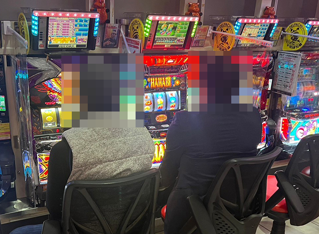 パチスロのシマをまわっていると、511番台の「ドンちゃん2」と512番台の「新ハナビ」で、晴れやかな表情をみせるプレイヤーを発見。