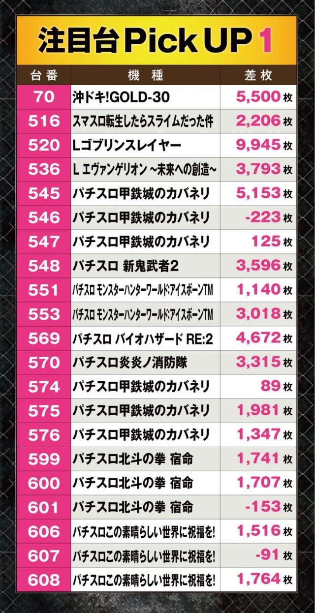 今回は全台系を中心とした好調台が目立つ結果となった。この結果を踏まえて、次回のブラックエンジェルス降臨の際も是非参考にしてくれ。