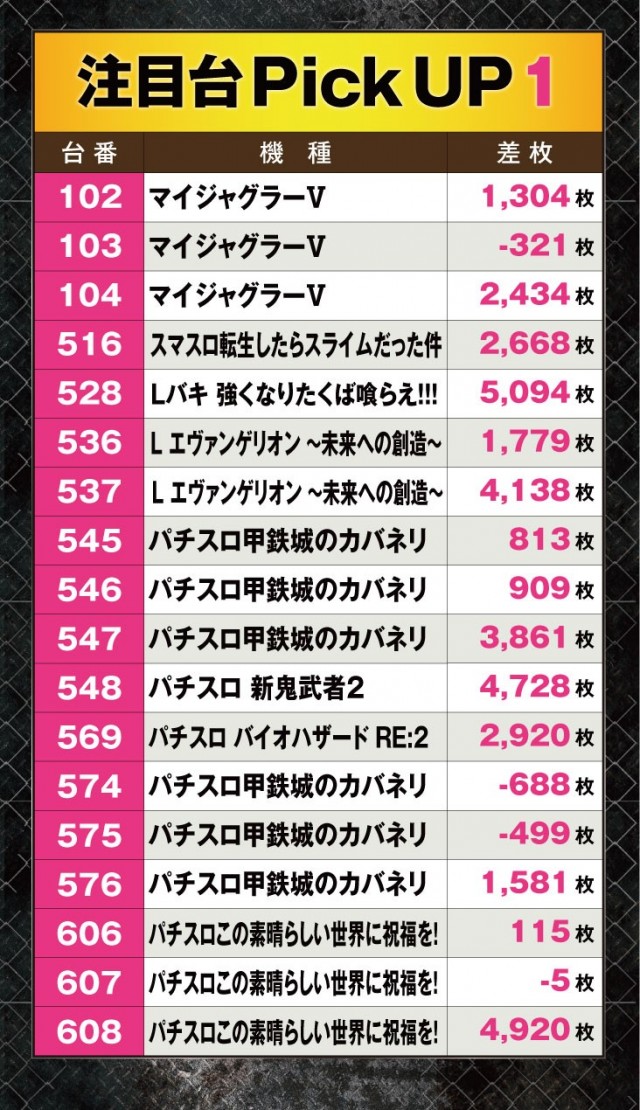 『L エヴァンゲリオン ~未来への創造~』や『パチスロ 新鬼武者2』、『パチスロこの素晴らしい世界に祝福を!』は4,000枚オーバーと見事な活躍を見せており、多くのプレイヤーが心から遊技を堪能できていたように思う。