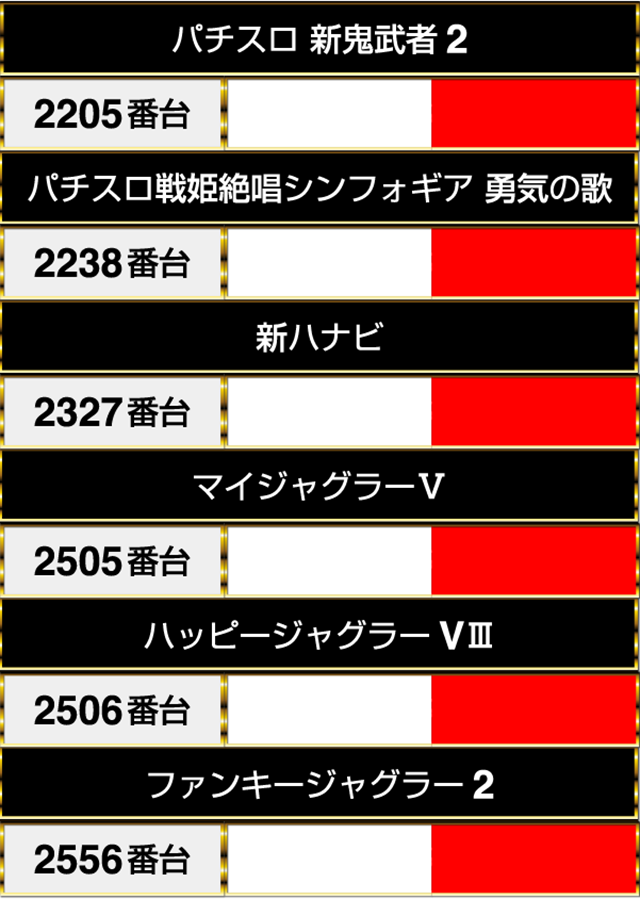 『パチスロ戦姫絶唱シンフォギア 勇気の歌』の2238番台や『マイジャグラーⅤ』の2505番台もプラスptでこの日を終えた。