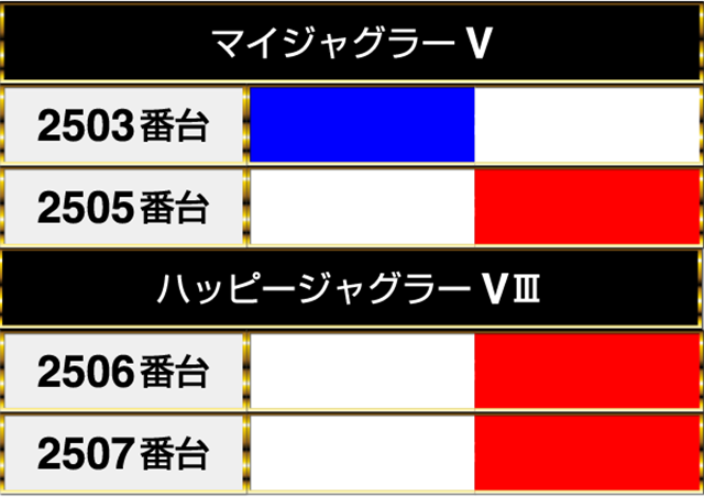 『マイジャグラーⅤ』と『ハッピージャグラーVⅢ』にも楽しげな姿が並び、雰囲気が明るかったことを覚えている。