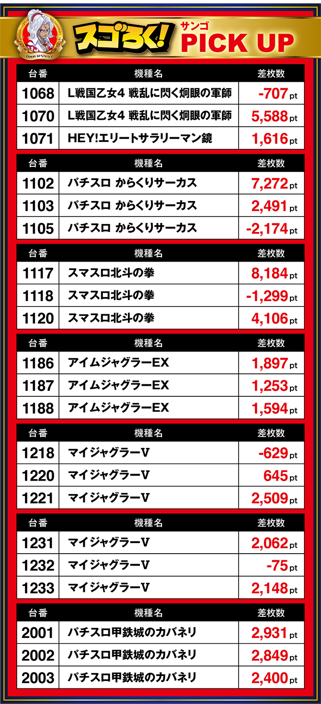 プレイヤーの笑顔にひかれて選んでみたら、どちらにも2,000ptを超えた台があったぞ。