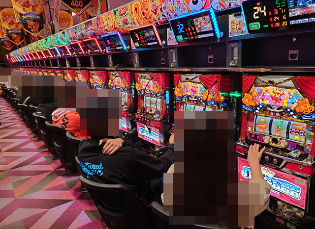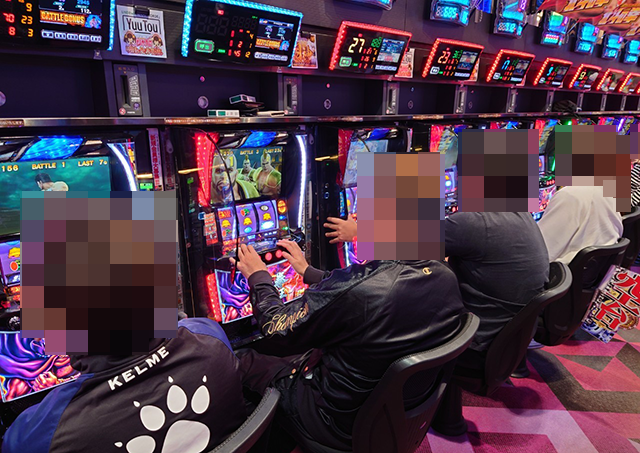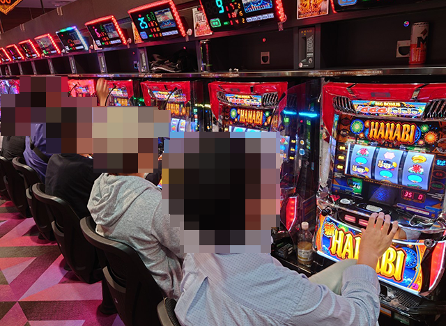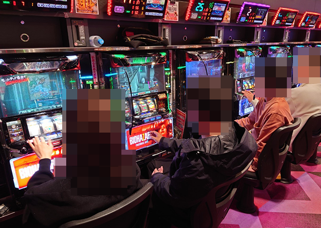 夕方頃に確認したときには、遊技を満喫しているようなプレイヤーが並んでいた。
