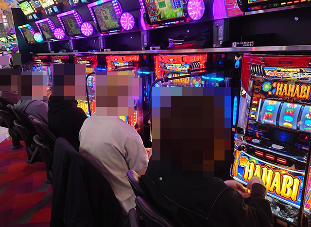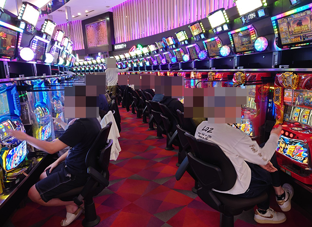 『L主役は銭形4』や『L戦国乙女4 戦乱に閃く炯眼の軍師』も好評であり、遊技を楽しむプレイヤーがズラリと並んでいた。
