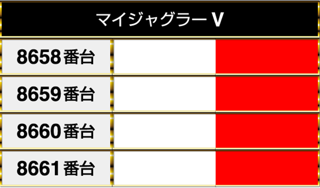 ボーナスタイプでは、『マイジャグラーⅤ』の8658番台から8661番台までが並んでプラスptを記録!