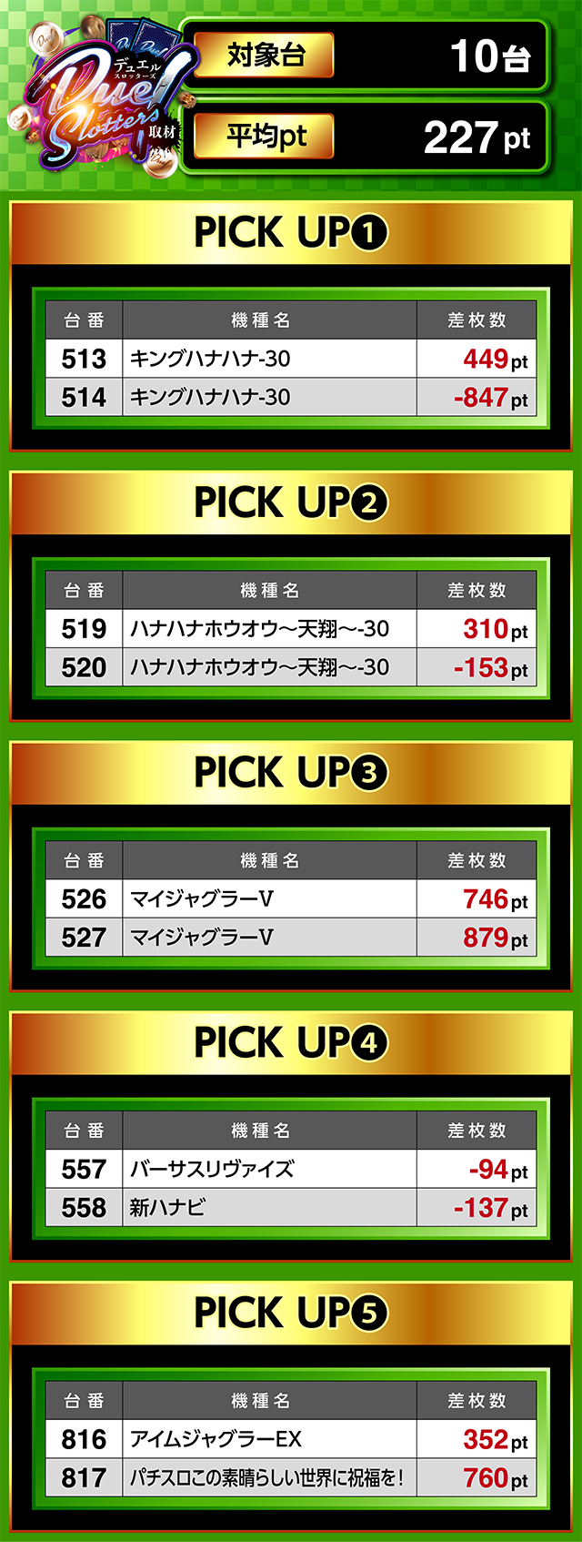 PICK UP並び・527番台「マイジャグラーⅤ」…879pt