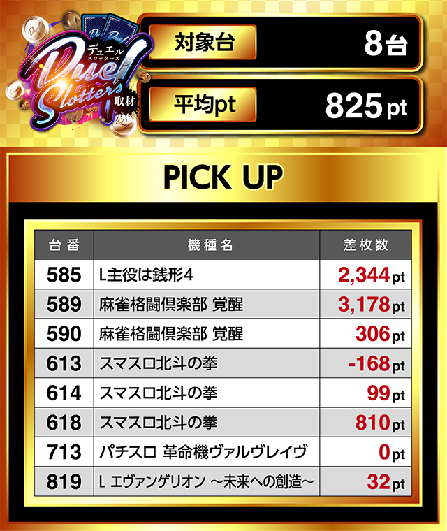 585番台の「L主役は銭形4」は、2,344ptをマーク。