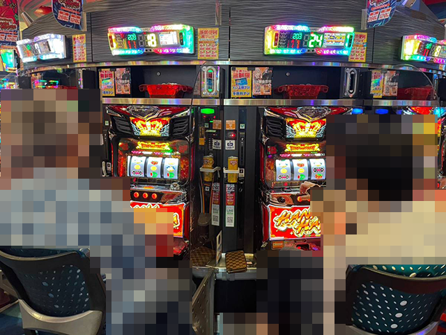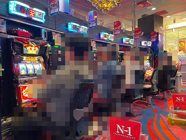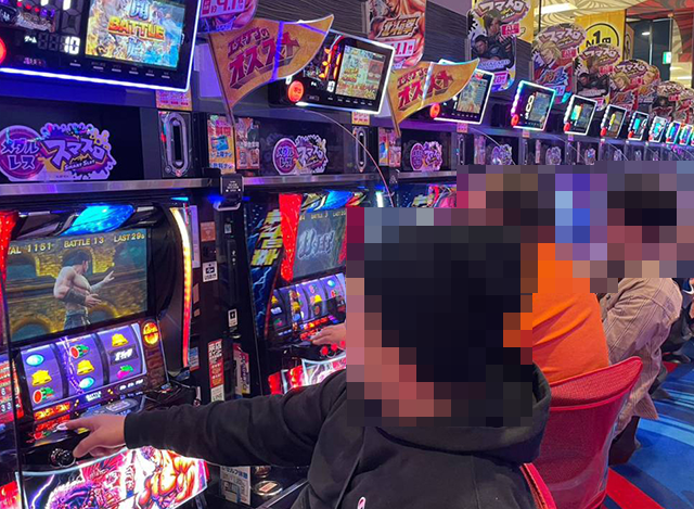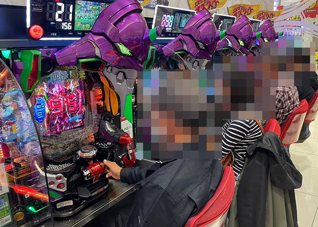 1箱以上の持ち玉を使って遊技をおこなっているプレイヤーの姿も多数。