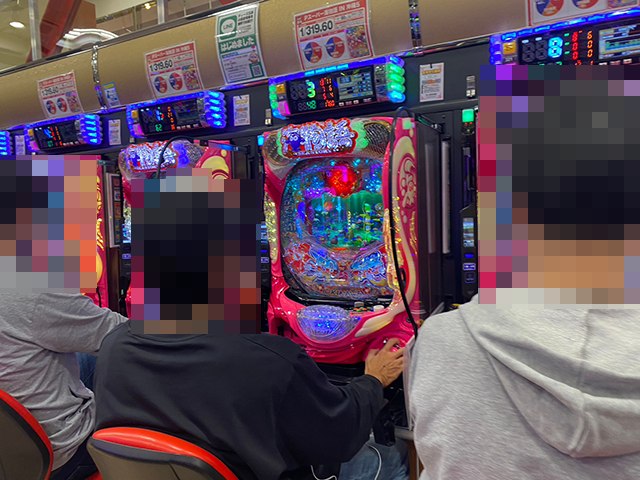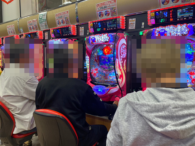 取材時に空き台はなく、すでに大当り回数が20回に到達している台もあった。
