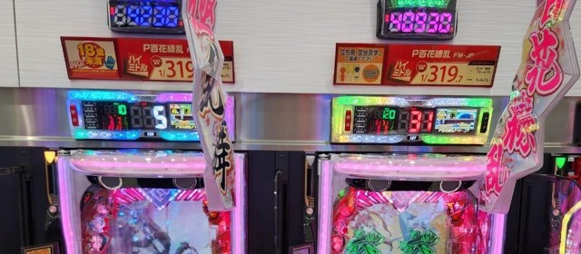 『エヴァ15』に次ぐ優良ぶりを見せたのが『P 百花繚乱』2台。その内1台がこの日1番の出玉を魅せていた。